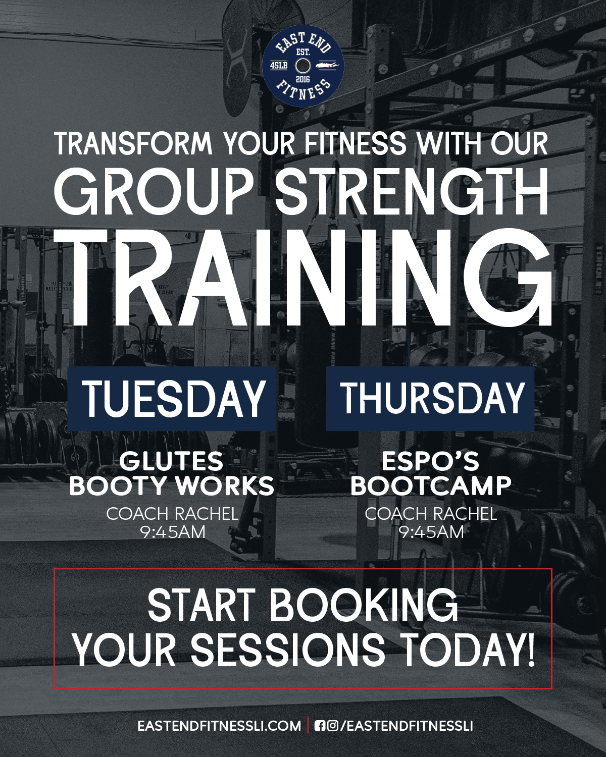 Here at East End Fitness, we offer sessions based on member’s needs and consistent attendance. Transform your fitness today with our Group Strength Training!